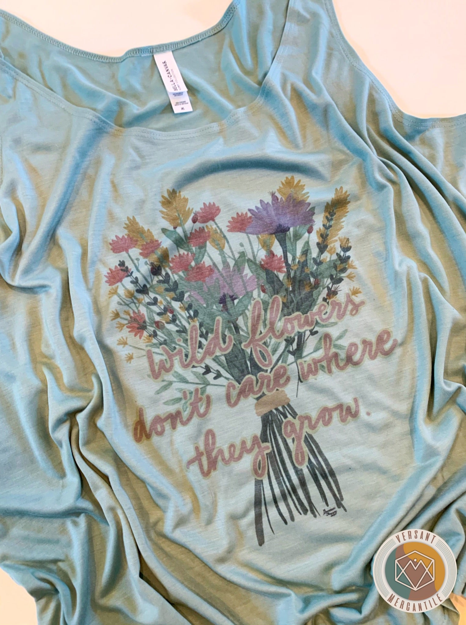 Wildflowers Don’t Care Where They Grow design printed on a soft shirt of your choice!